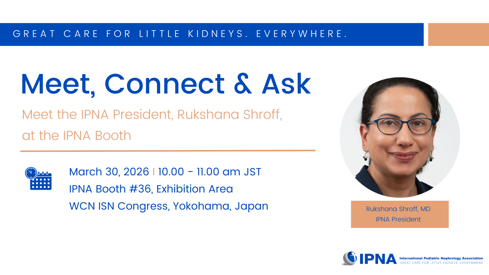 It is a great pleasure to welcome you to our IPNA congress in Kyoto, Japan, from 9 to 13 March 2027.